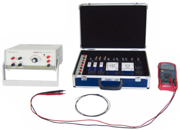 實(shí)驗(yàn)儀由測試實(shí)驗(yàn)暗箱、九孔板插件、實(shí)驗(yàn)元件、電源、數(shù)字萬用表等組成。